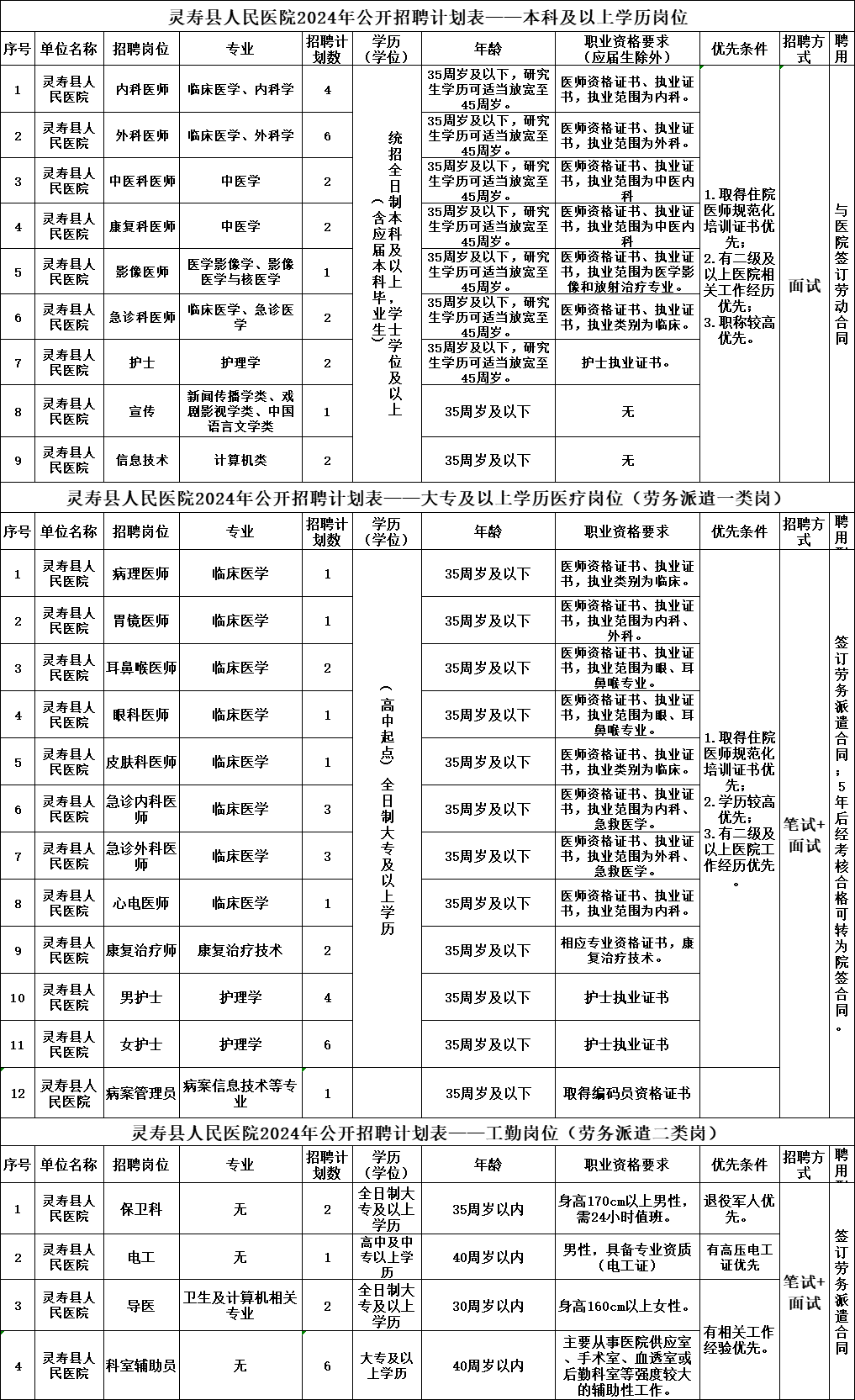 原標(biāo)題:靈壽縣人民醫(yī)院2024年公開招錄勞動(dòng)聘用人員的公告